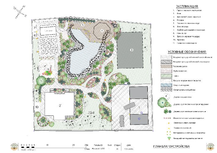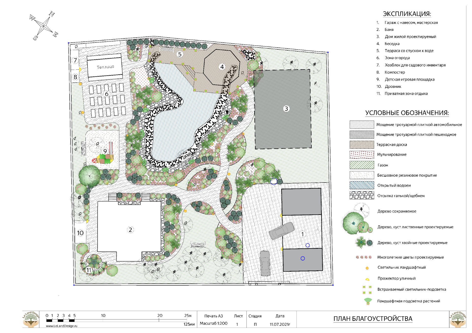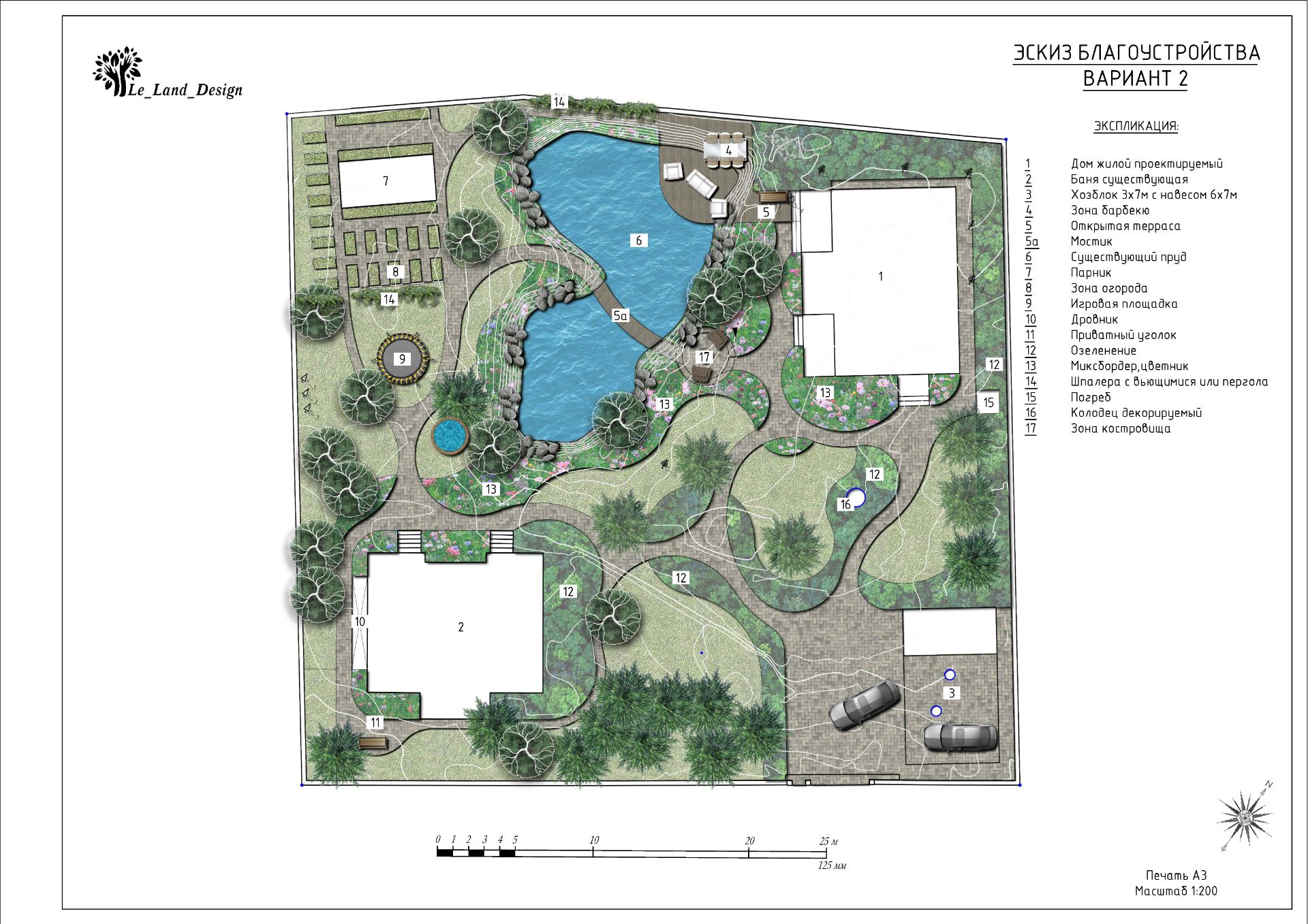 1.6. Предложить варианты декорирования берега пруда, сохранив существующие растения и отделку. Возможно устройство мостика в узком месте.