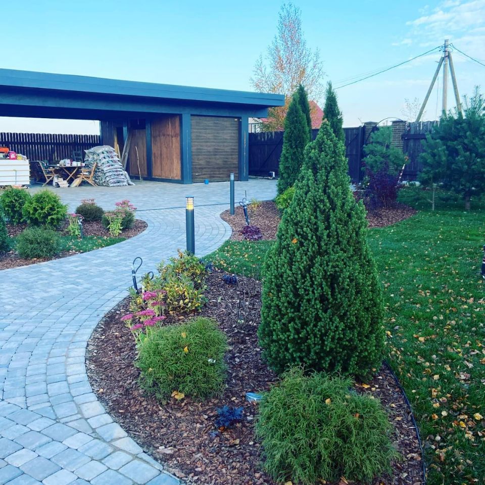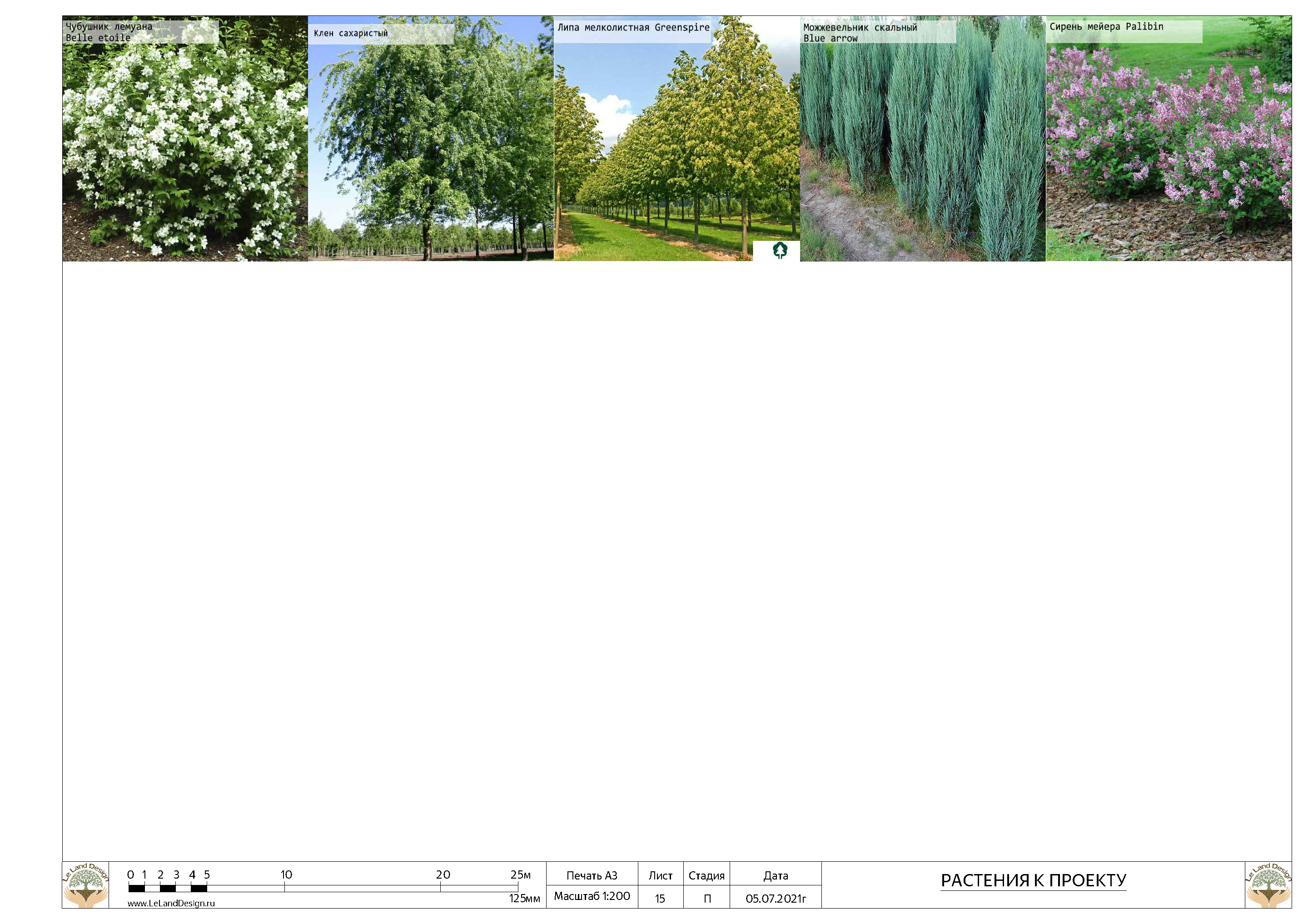 1.8. Предложить в ландшафтных композициях место для лиственницы (например, в группе у въезда), кедровых сосен (3шт), елей обыкновенных (2шт).
