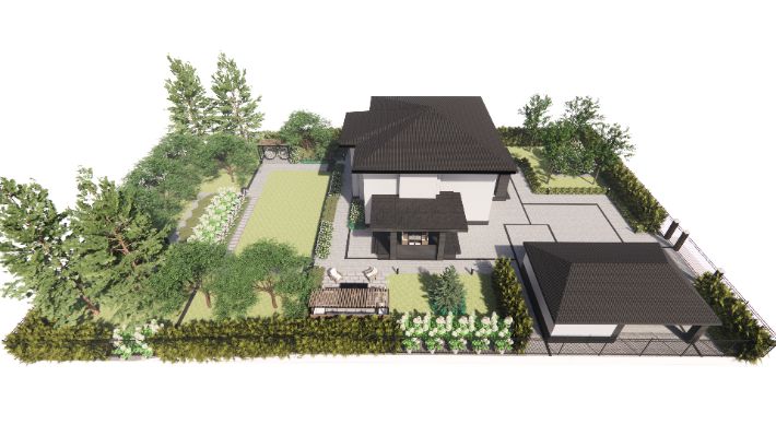 8. Возможное озеленение: группами на заднем дворе, без сплошной живой изгороди.