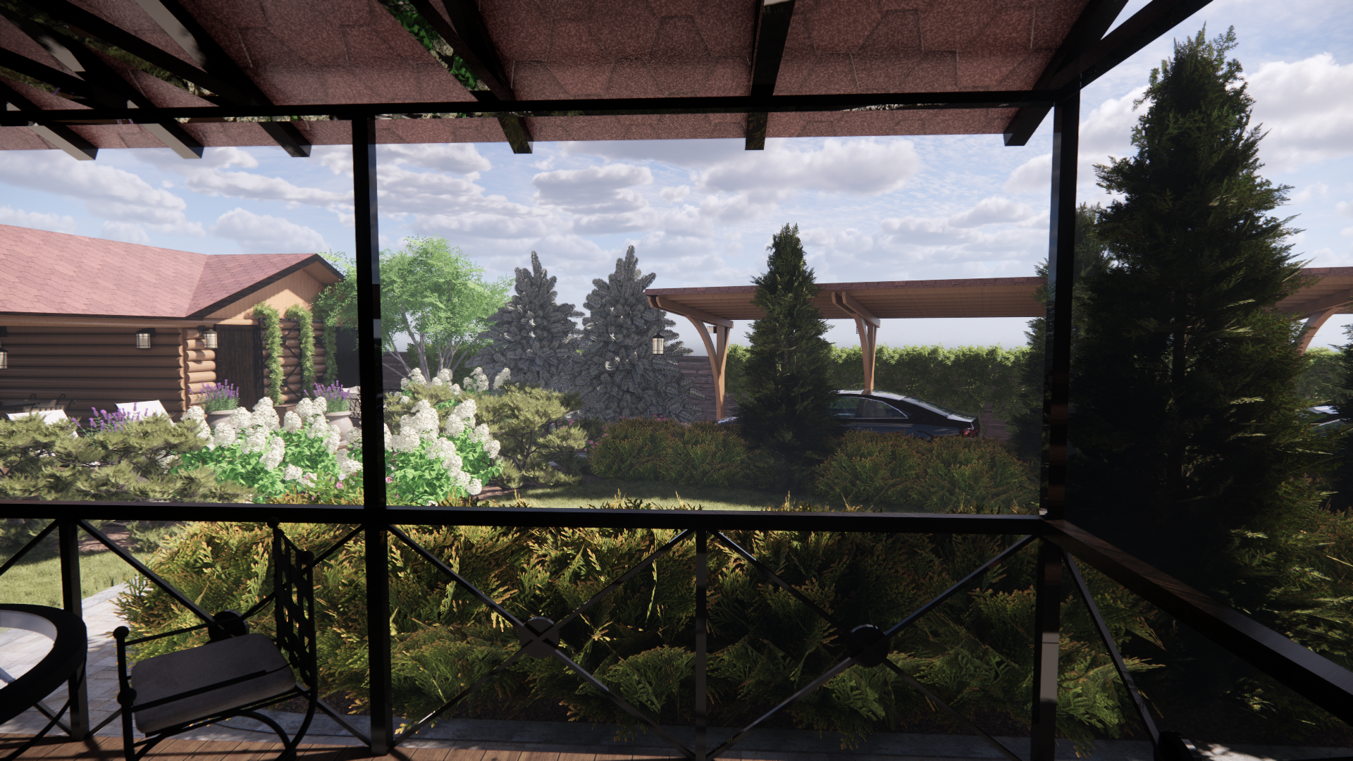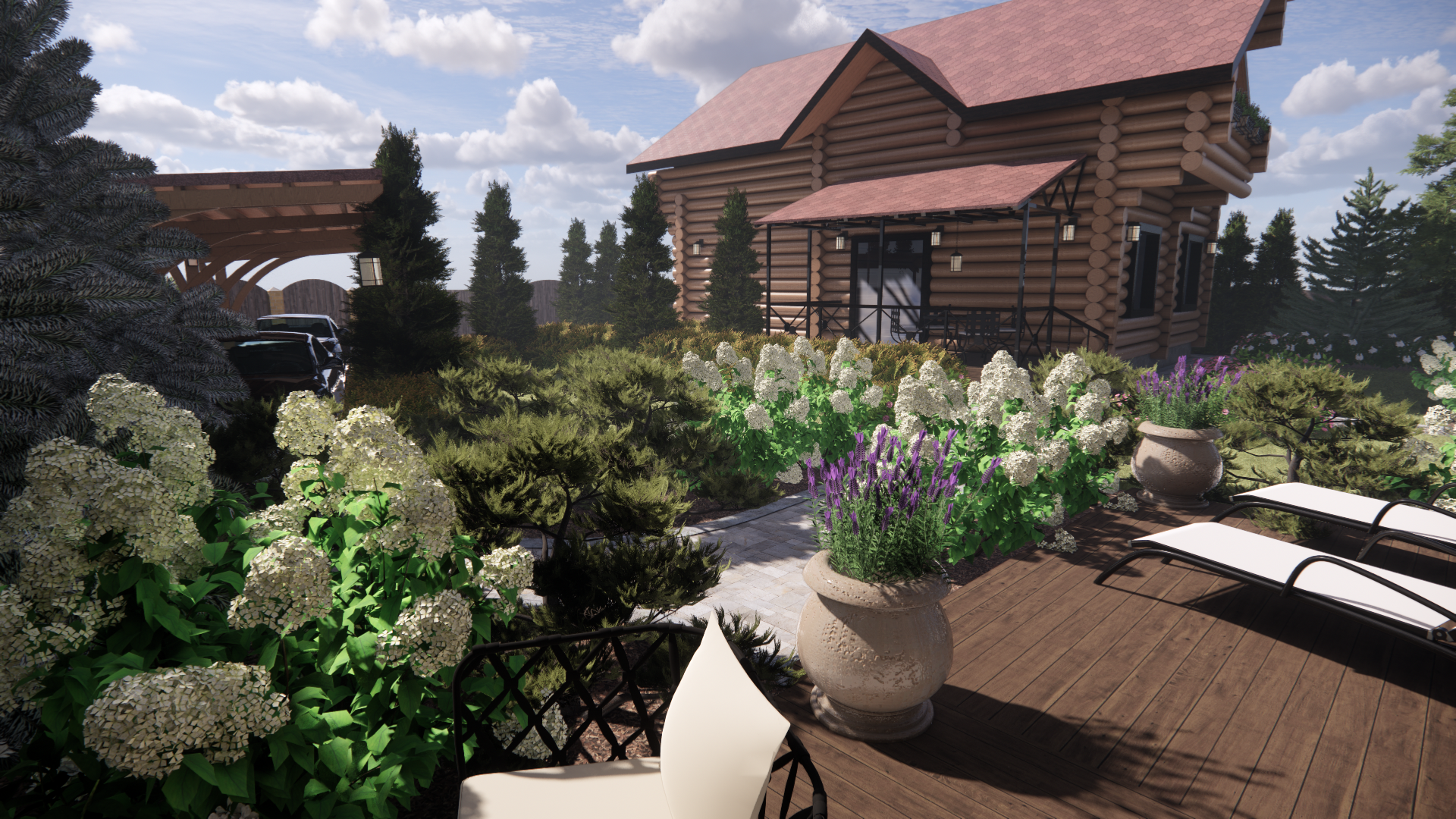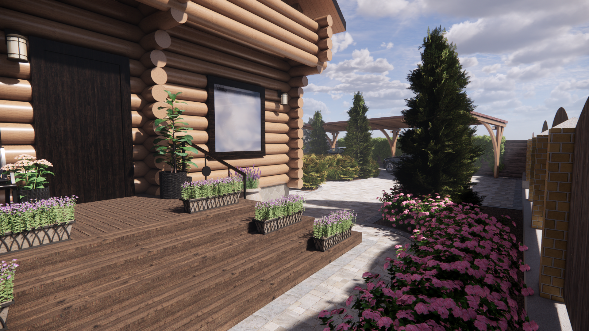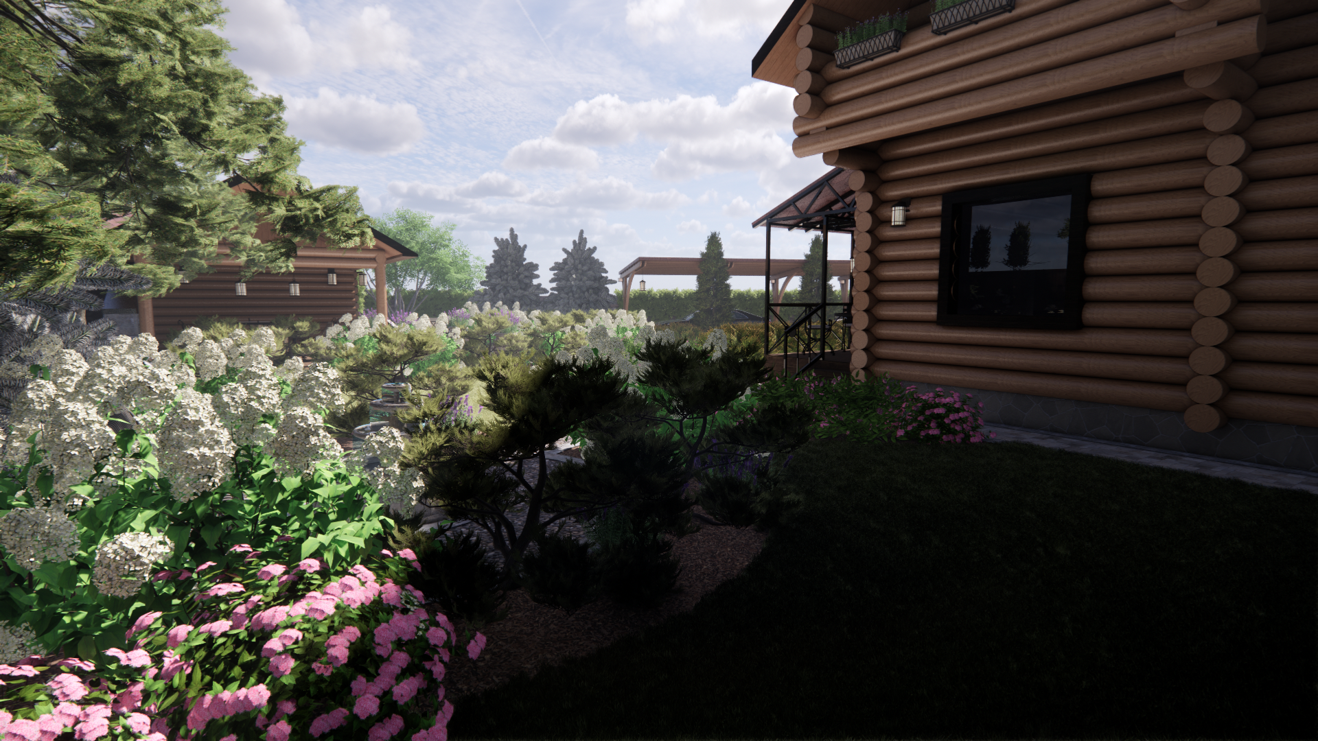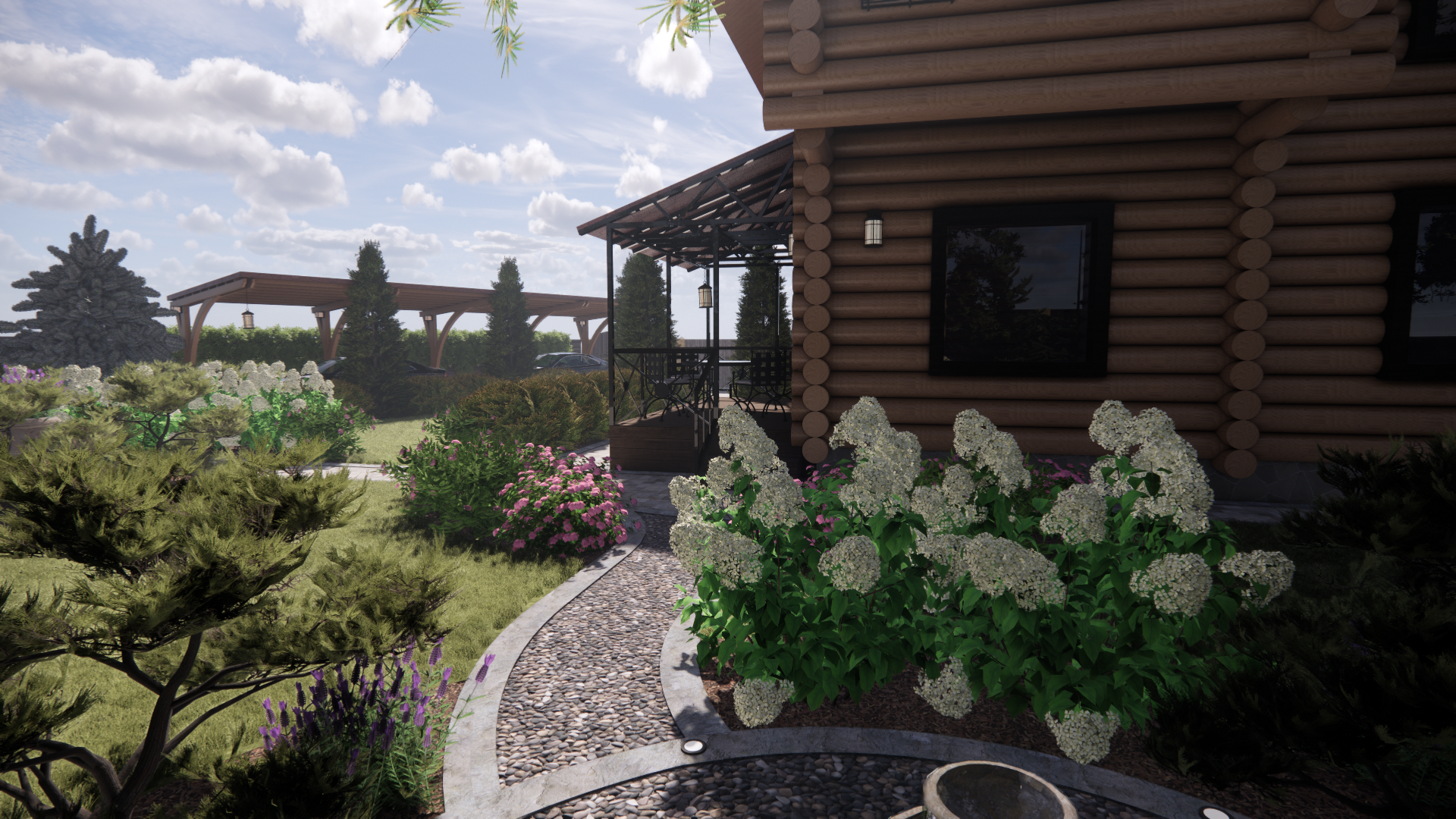 Участок площадью 1000м2.Участок расположен в коттеджном поселке. По периметру забор: внешняя часть-профлист, внутренние границы – деревянный. Дом из бревна. Баня из бревна, фасад зашит доской. Залита бетонная площадка под парковку. Ворота откатные. У дома выполнена бетонная отмостка, установлены дождеприемные колодцы с решеткой. У бани выполнена отмостка из доски, дождеприемные колодцы отсутствуют.