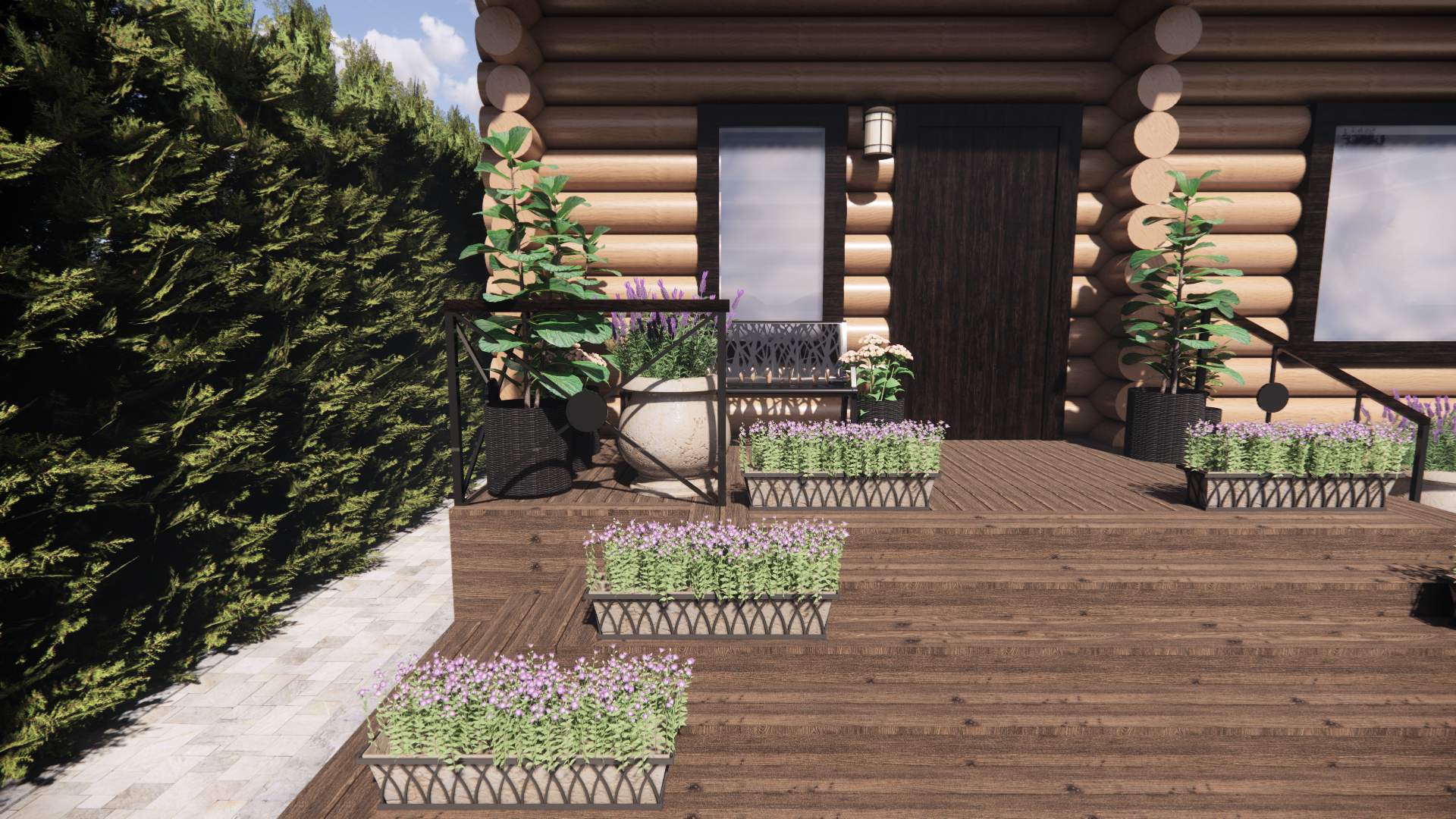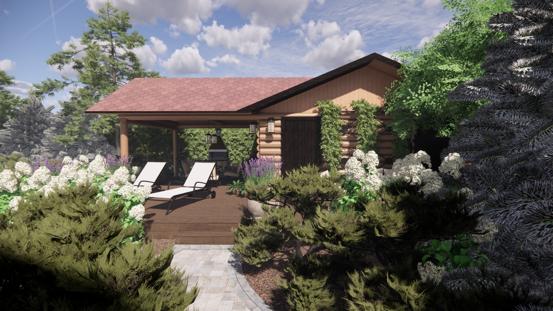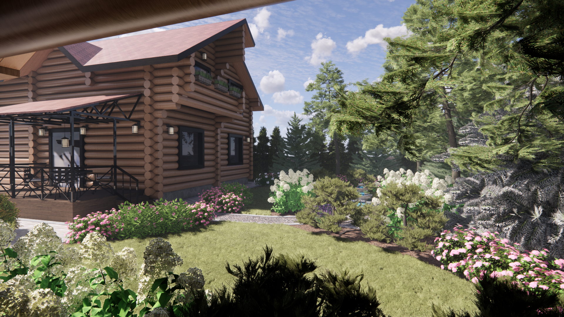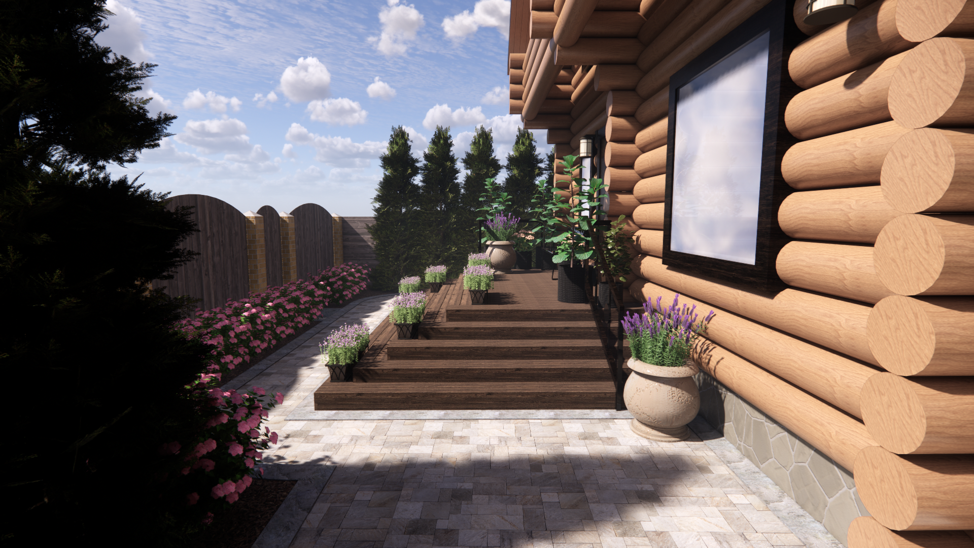 Участок площадью 1000м2.Участок расположен в коттеджном поселке. По периметру забор: внешняя часть-профлист, внутренние границы – деревянный. Дом из бревна. Баня из бревна, фасад зашит доской. Залита бетонная площадка под парковку. Ворота откатные. У дома выполнена бетонная отмостка, установлены дождеприемные колодцы с решеткой. У бани выполнена отмостка из доски, дождеприемные колодцы отсутствуют.